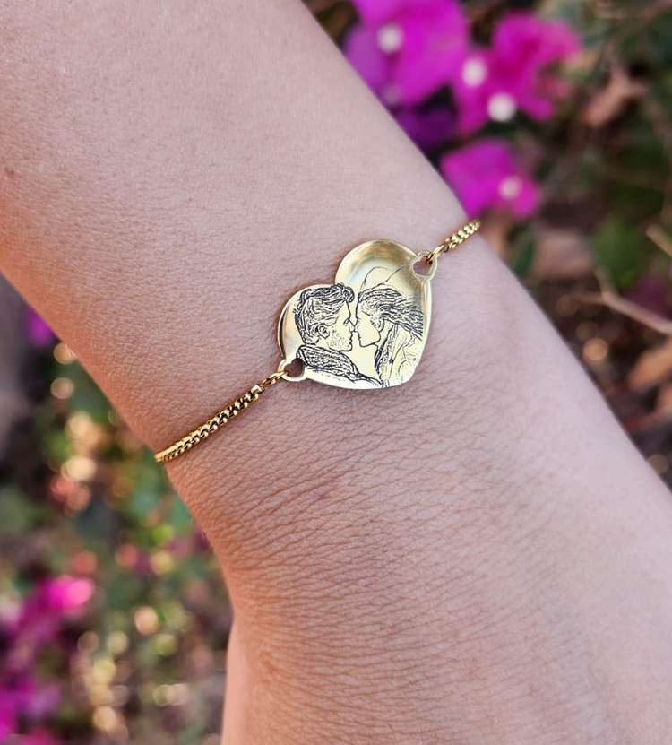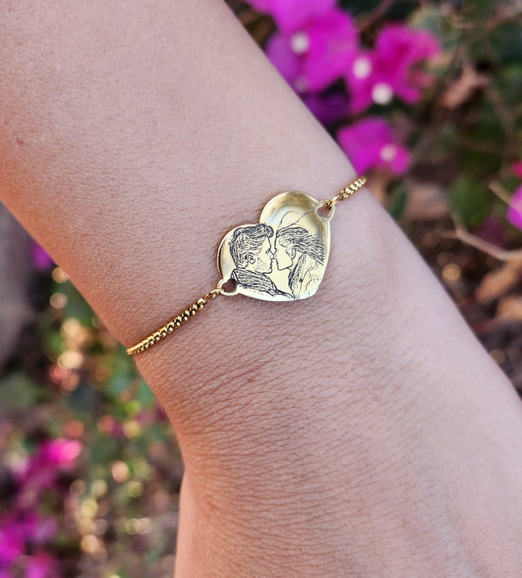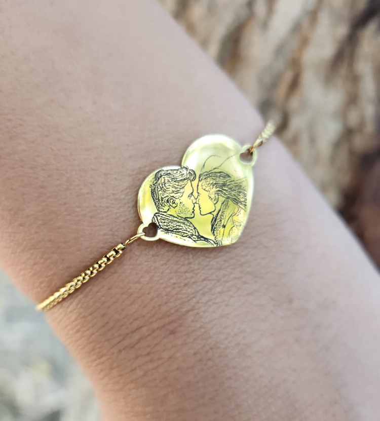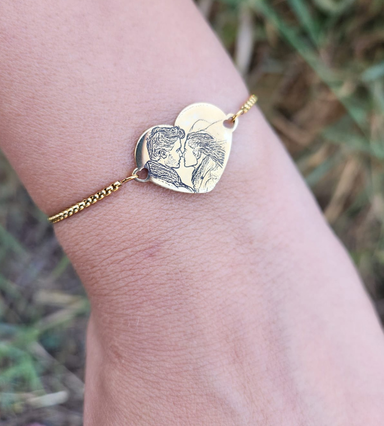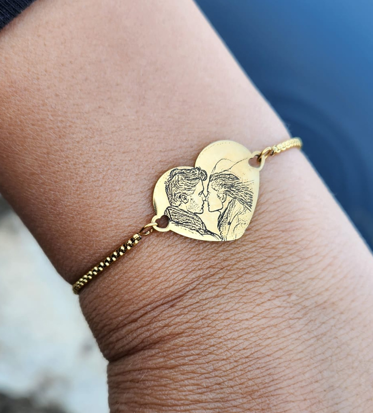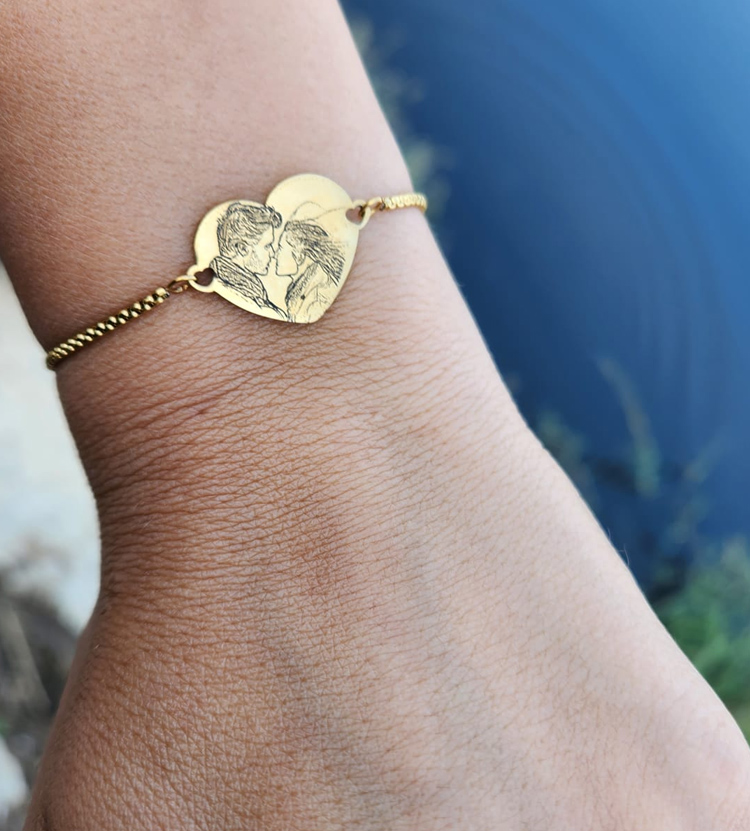 צמיד לב לאישה עם צריבת תמונה בלייזר דגם נטליה