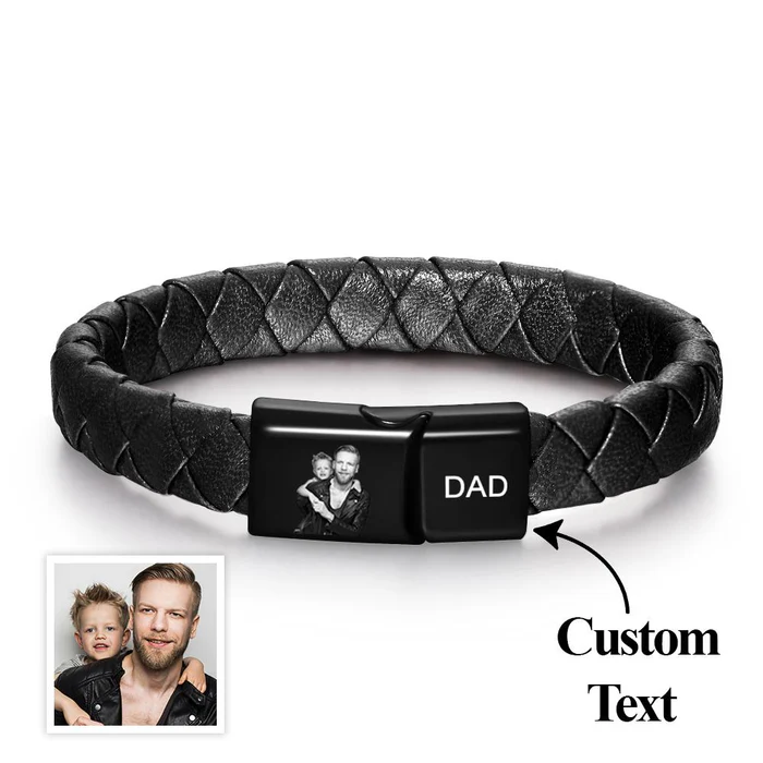 צמיד עור לגבר שחור עם צריבת תמונה