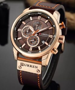 שעון יד עור לגבר רצועת עור חומה עם צריבת תמונה אישית בלייזר