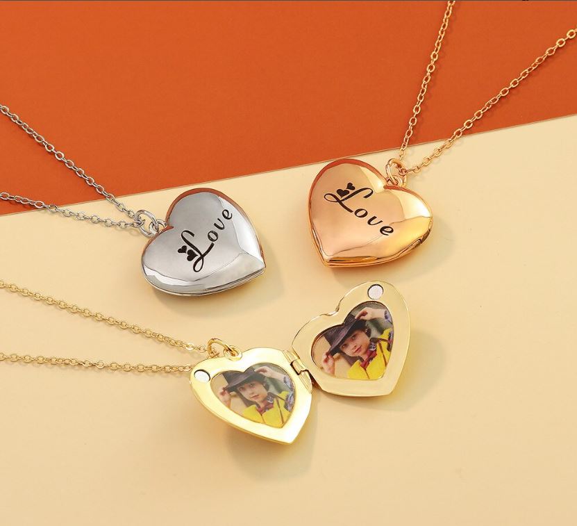 שרשרת לב נפתח עם תמונה אישית וצריבה חיצונית