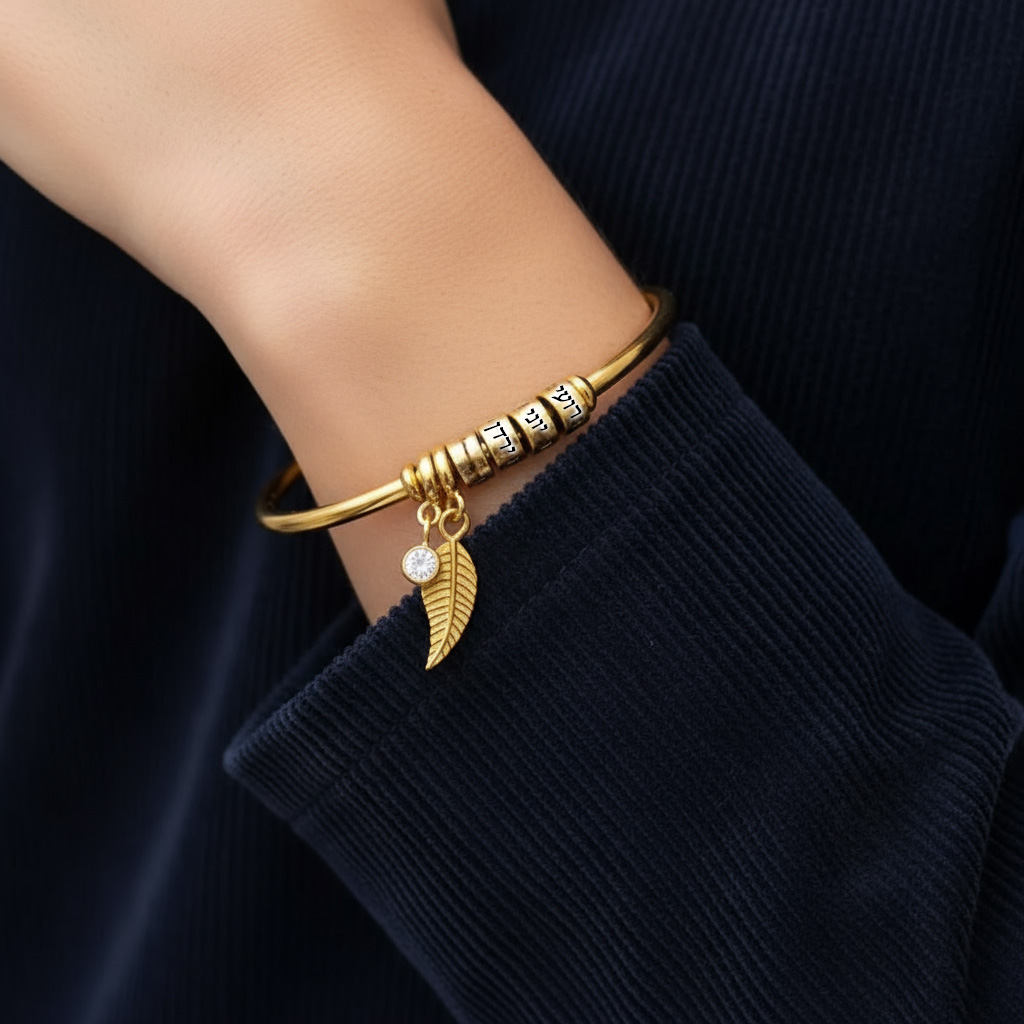 צמיד לאישה קוטר 18 סמ (סטנדרטי) זהב/כסף לבחירה כולל צריבת שמות בלייזר על גבי החרוזים