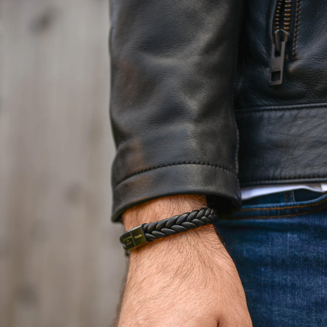 1 review for צמיד עור לגבר שחור עם צריבה בלייזר