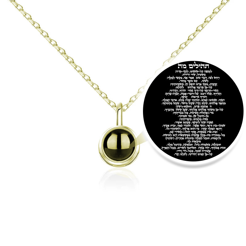 הלוחית מוטמעת בתוך שרשרת או צמיד יוקרתי, ובתוכה עדשת זכוכית מוגדלת המאפשרת לך לראות את התמונה בבירור: