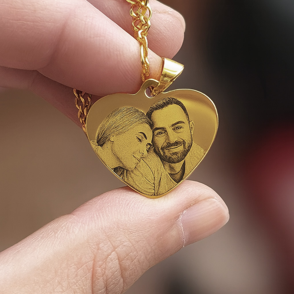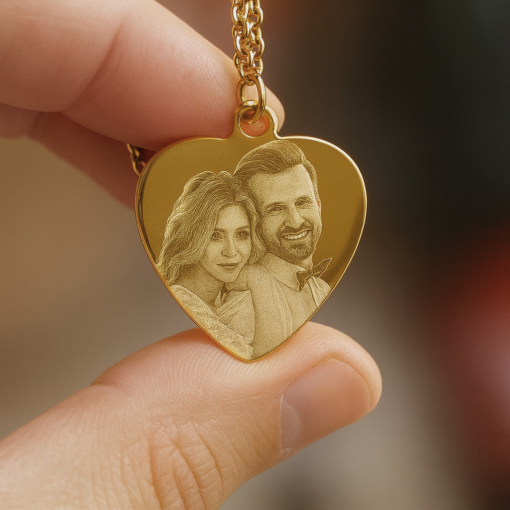 שרשרת לב ציפוי זהב עם צריבת תמונה אישית בלייזר